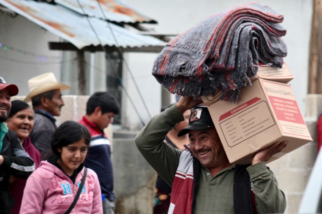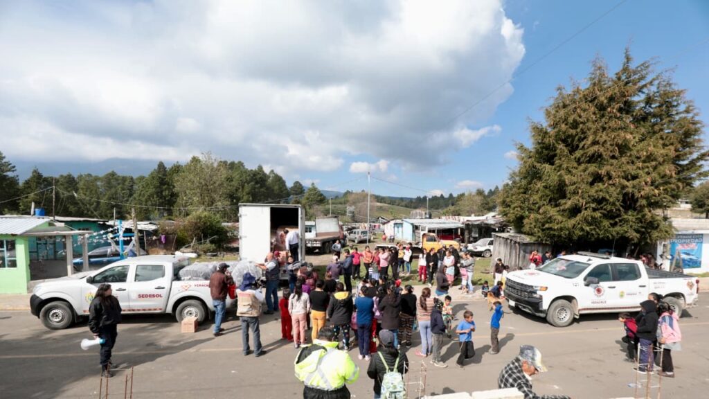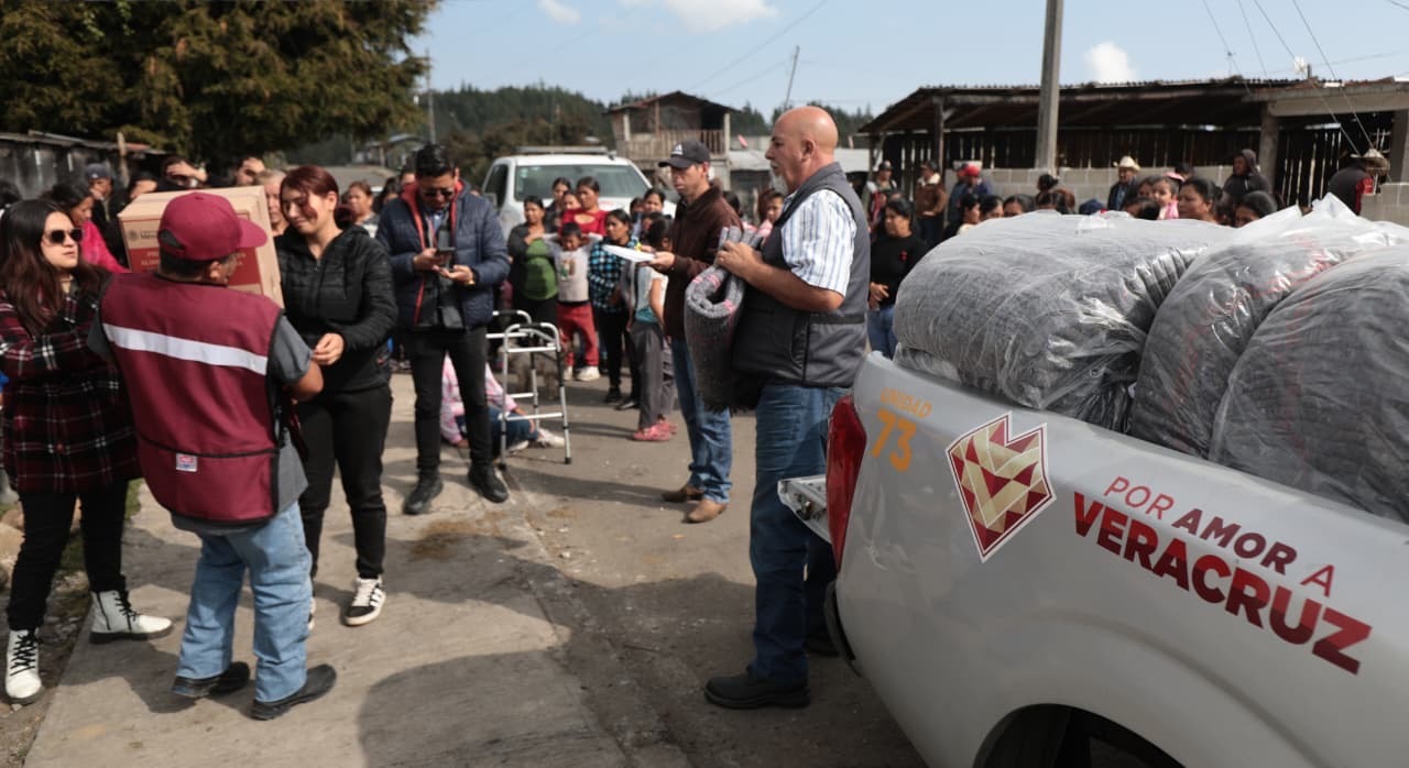 Como parte de esta jornada, en la localidad perteneciente al municipio de Coatepec se entregaron 130 canastas alimentarias y 200 cobertores, con acompañamiento directo a la población por parte de las secretarías de Protección Civil, Desarrollo Social y el DIF Estatal.