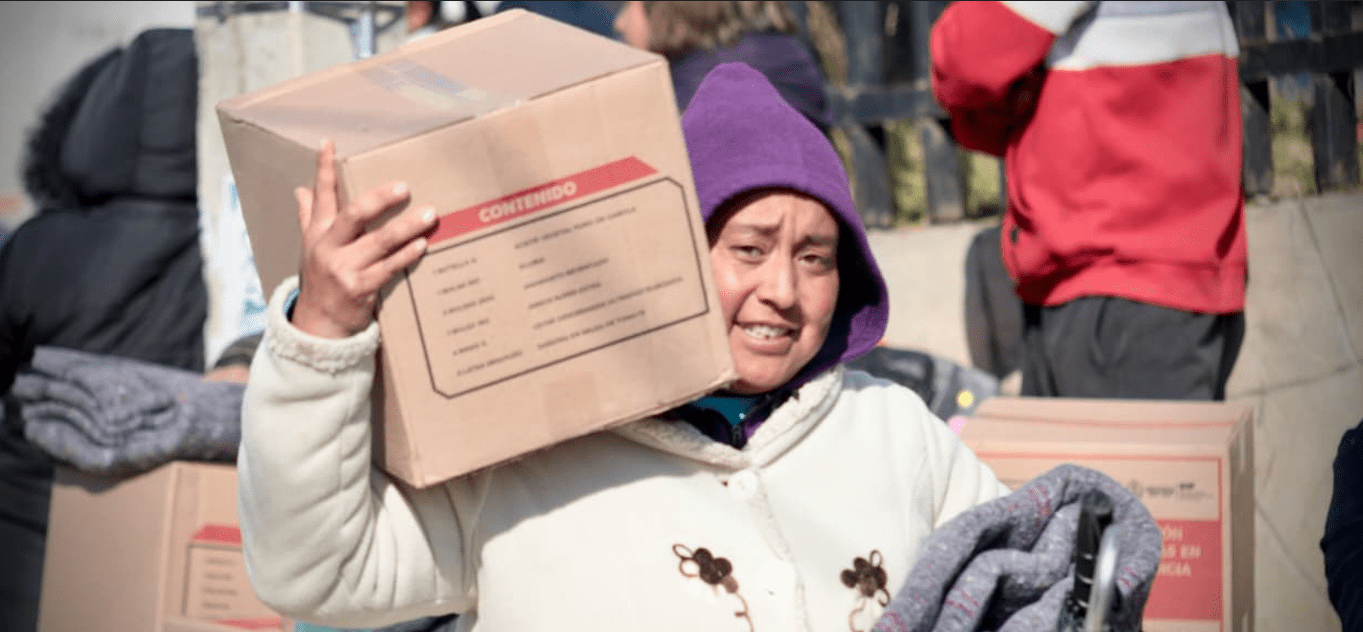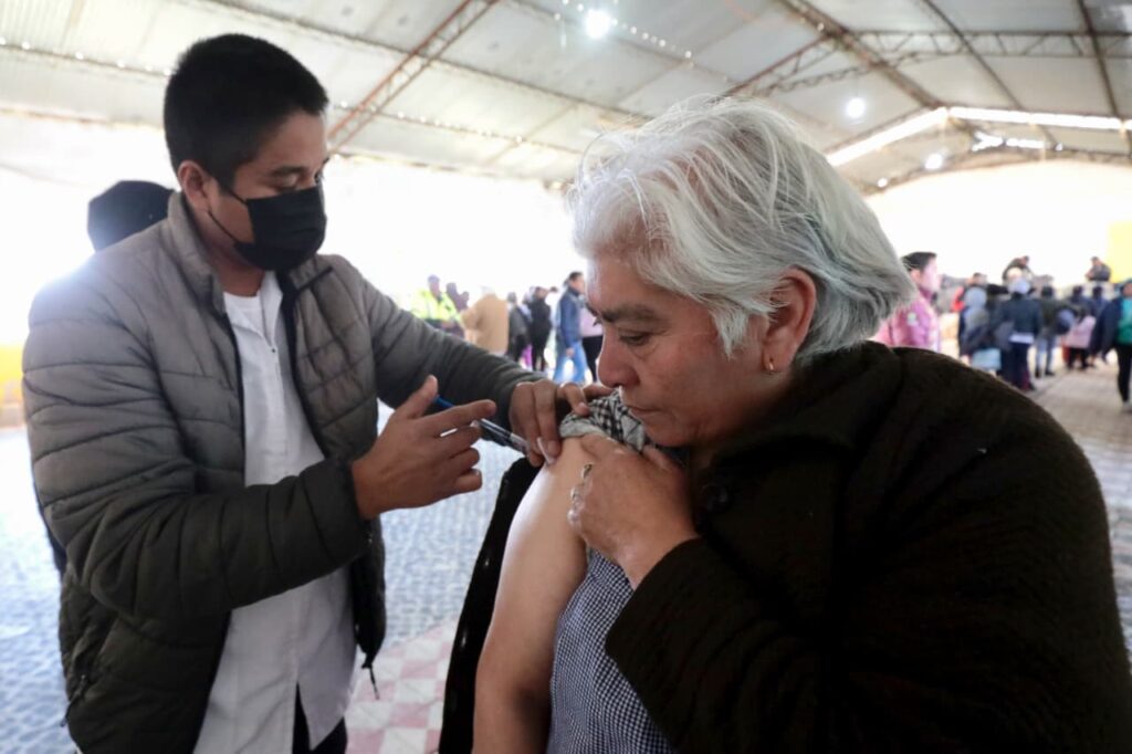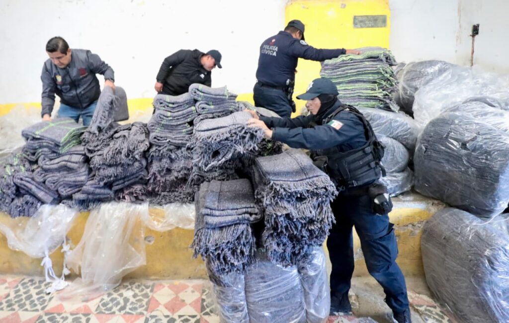 Cada familia recibió dos cobijas y dos cajas de alimentos, además de atención directa mediante una brigada de vacunación que aplicó dosis contra COVID-19 e influenza, para fortalecer la protección sanitaria durante el invierno.