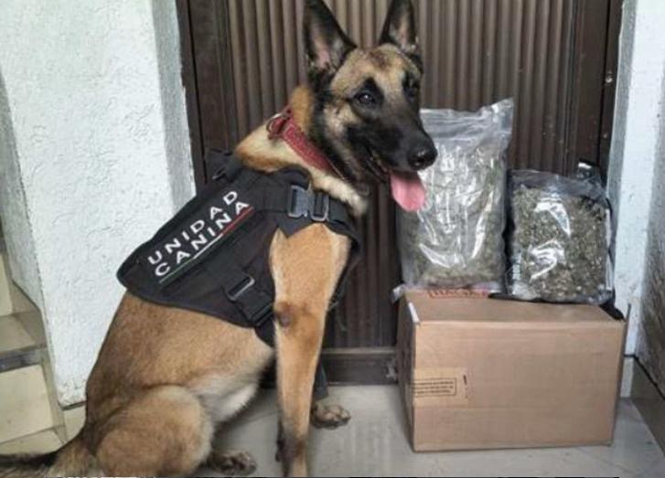 En Poza Rica y Veracruz, derivado de operativos efectuados en empresas dedicadas al envío de paquetería, binomios caninos de la Secretaría localizaron y aseguraron más de un kilogramo de hierba verde similar a la marihuana y tres vapeadores con THC.