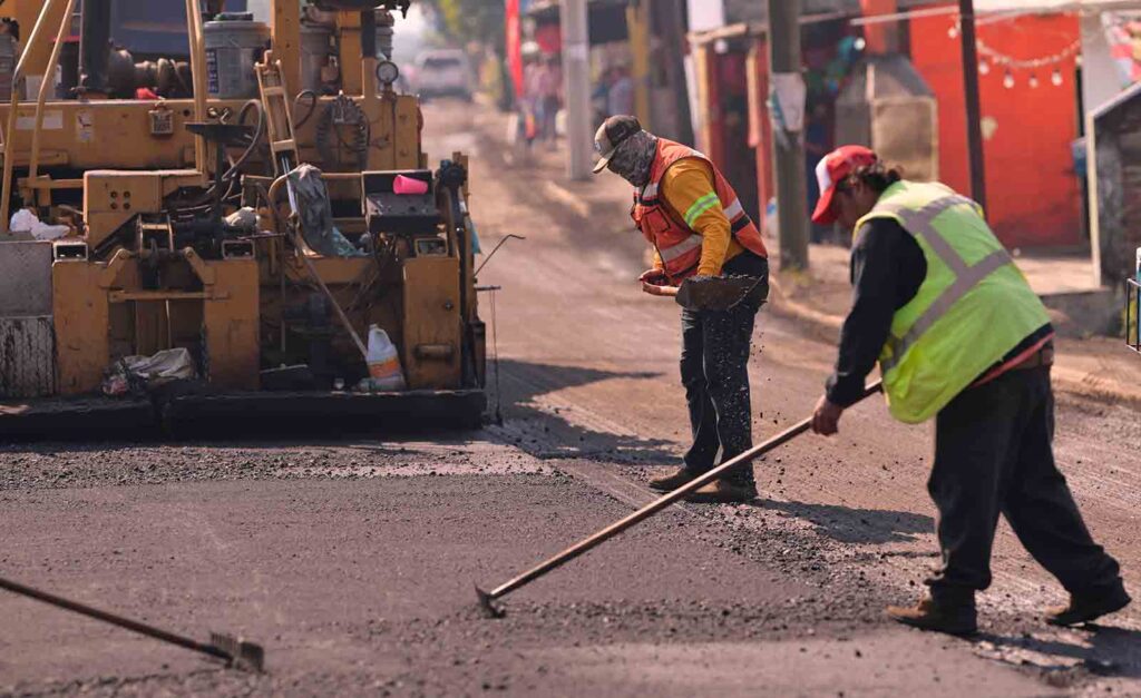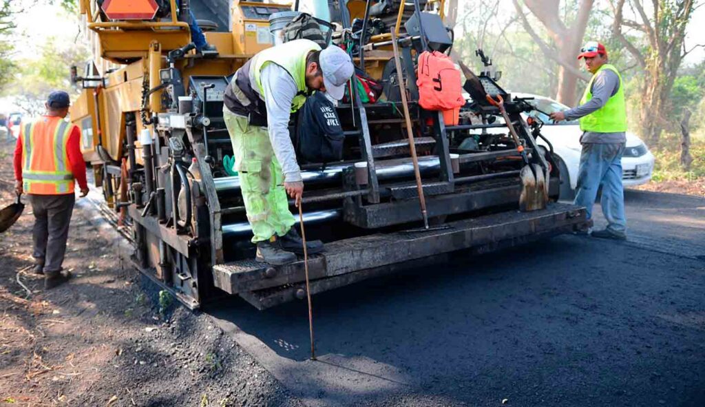 Las labores incluyen limpieza y construcción de cunetas, desazolve de alcantarillas, fresado de la superficie existente y la colocación de nueva carpeta asfáltica, permitiendo mejorar la superficie de rodamiento, reforzar la seguridad vial y asegurar un adecuado desalojo de aguas pluviales.