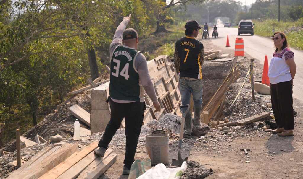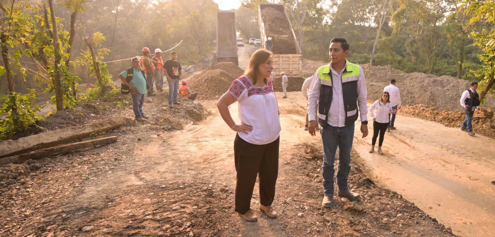 En Ixcatepec, instruyó a garantizar la calidad de la obra y el cumplimiento de los tiempos de ejecución para restablecer de manera segura la conectividad en un tramo afectado por una socavación provocada por las lluvias, al tratarse de una vía que conecta el entronque con la carretera federal.