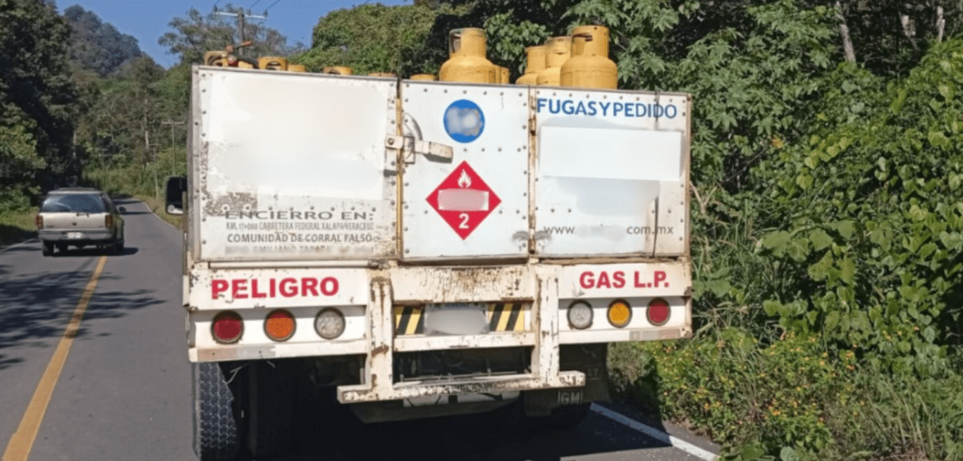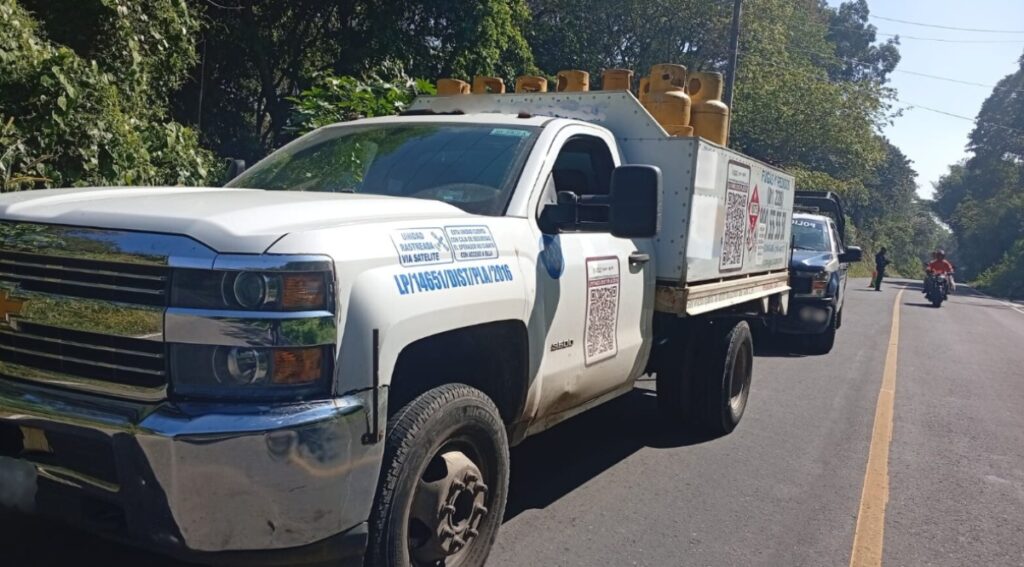 La unidad vehicular fue asegurada como medida preventiva, ya que transportaba material peligroso consistente en 31 cilindros de gas, con el objetivo de evitar cualquier incidente que pusiera en riesgo a la ciudadanía.
