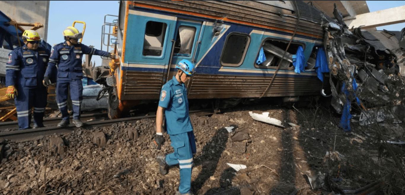 El accidente ocurrió cuando la pesada estructura, utilizada en la construcción de una nueva línea ferroviaria, se desplomó justo en el momento en que el tren cubría la ruta Bangkok–Ubon Ratchathani. La escena provocó un operativo de emergencia de gran magnitud, con equipos de rescate trabajando entre los vagones dañados y los restos de la grúa para localizar a sobrevivientes.