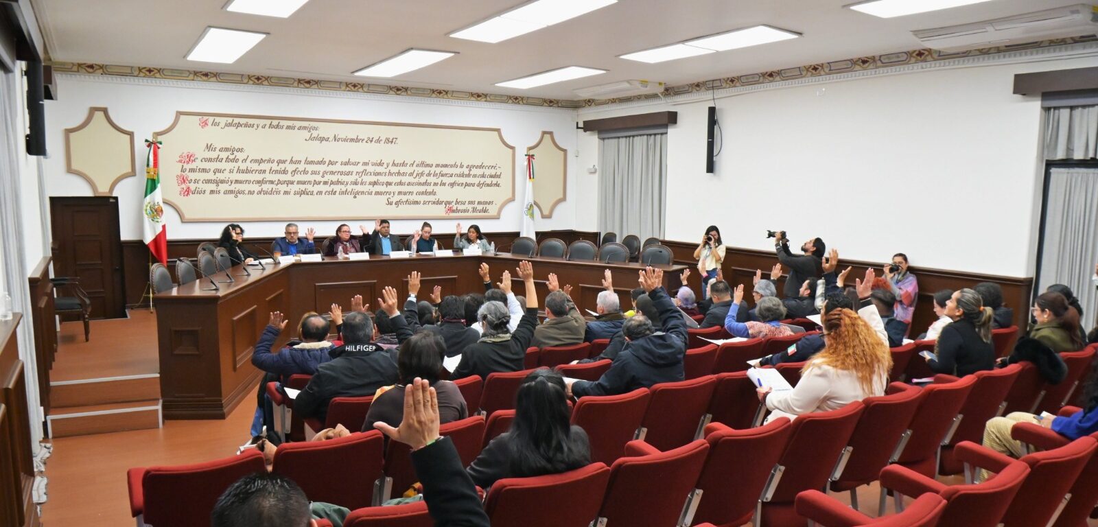 Además, se tomó protesta a las vocalías que integran el SMIMHVLV, conformadas por titulares de las diversas Direcciones y áreas del Ayuntamiento de Xalapa, así como por representantes de Participación Ciudadana, de la academia y de la sociedad civil, todas y todos con reconocida trayectoria en la promoción y defensa de los derechos de las mujeres.