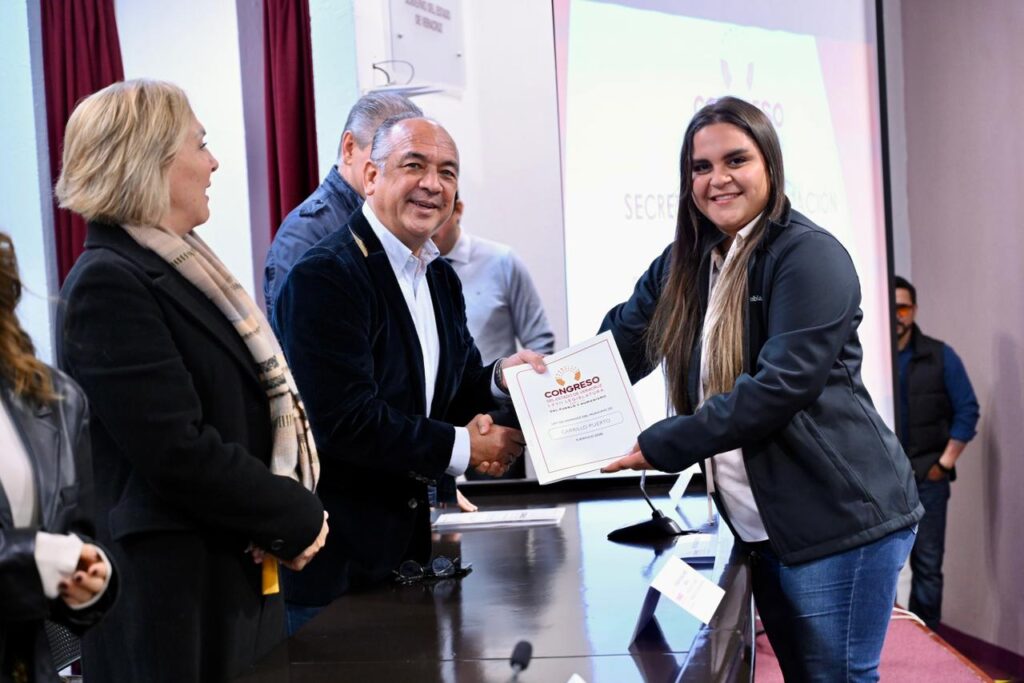 Asistieron a este acto las diputadas María Elena Córdova Molina y Citlali Medellín Careaga, los diputados Alejandro Porras Marín y Felipe Pineda Barradas, servidoras y servidores públicos municipales y autoridades de este Congreso.