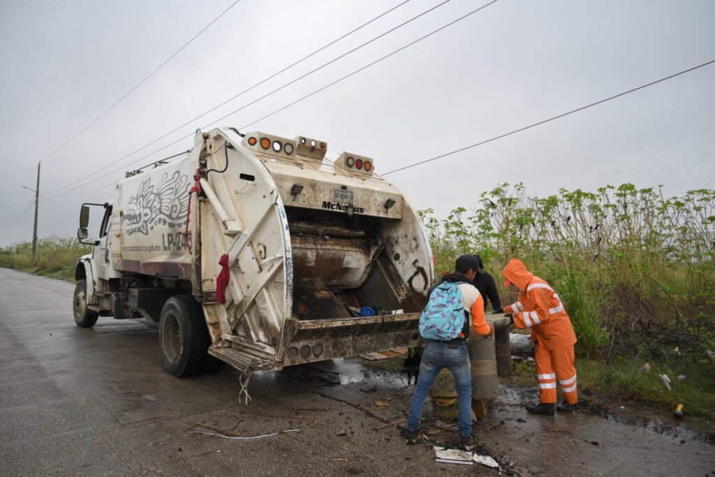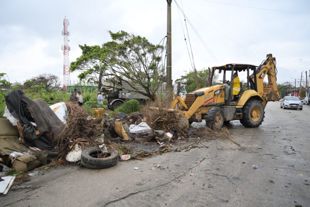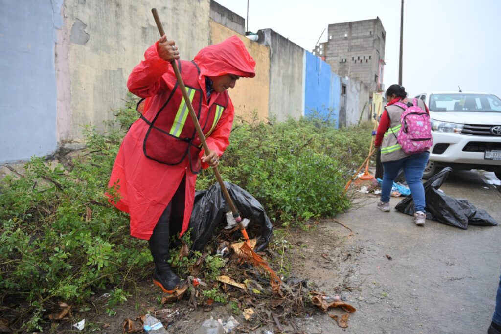 Las labores de este domingo se complementaron con perifoneo informativo por parte de personal de Limpia Pública para dar a conocer los horarios de recolección de basura. También realizaron barrido de calles, limpieza de banquetas y chapeo de vegetación, con el apoyo de maquinaria pesada.