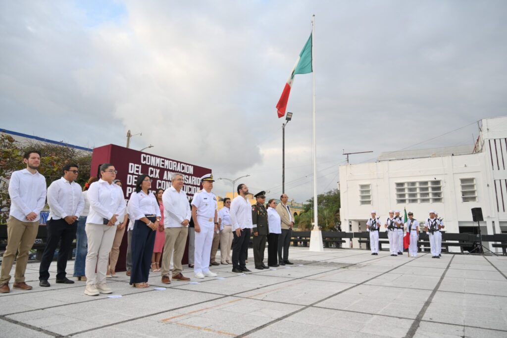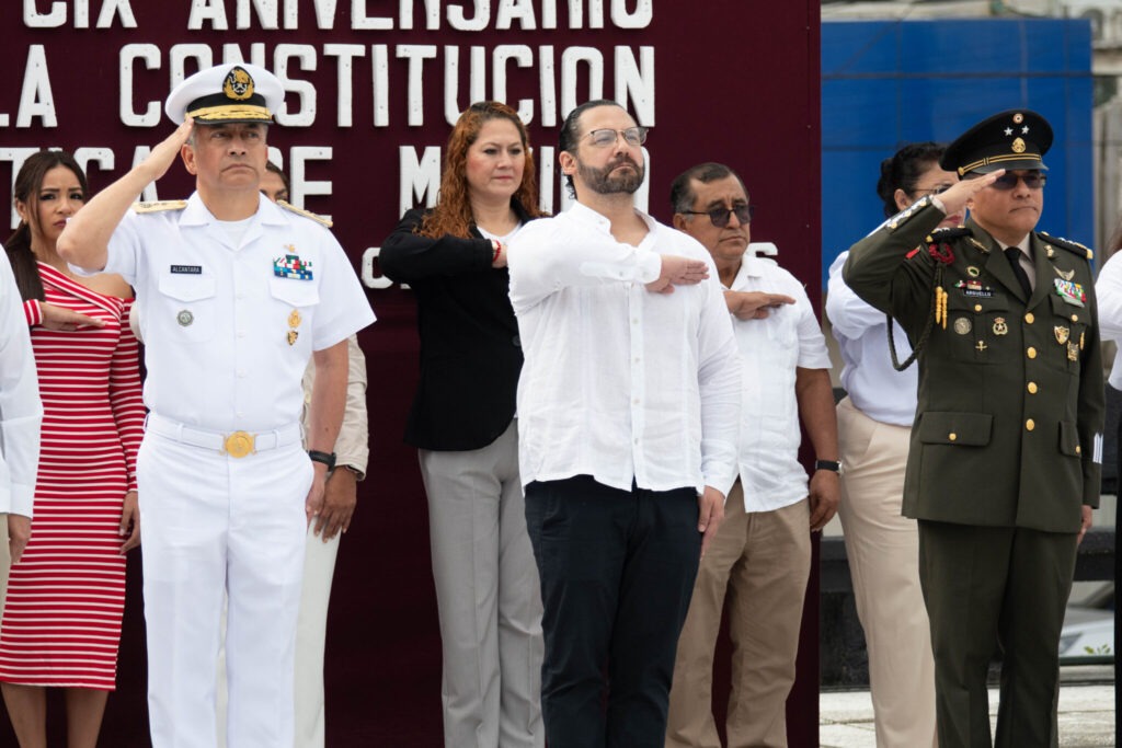 Durante el acto cívico se rindieron honores al Lábaro Patrio y se entonó el Himno Nacional Mexicano, a cargo de la banda de guerra y escolta de la Tercera Zona Naval, en un ambiente de respeto y unidad.