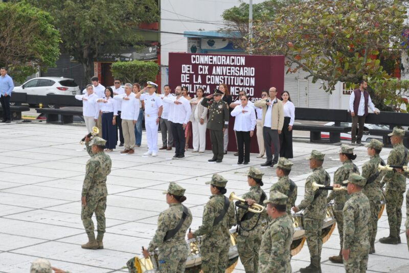 Coatzacoalcos, Ver., 5 de febrero de 2026.– En el marco del 109 aniversario de la Promulgación de la Constitución Política de los Estados Unidos Mexicanos de 1917, el presidente de Coatzacoalcos, Pedro Miguel Rosaldo García, encabezó la ceremonia cívica realizada en el parque Independencia, donde reafirmó el compromiso de su gobierno con los principios constitucionales, la legalidad y la transformación del municipio.