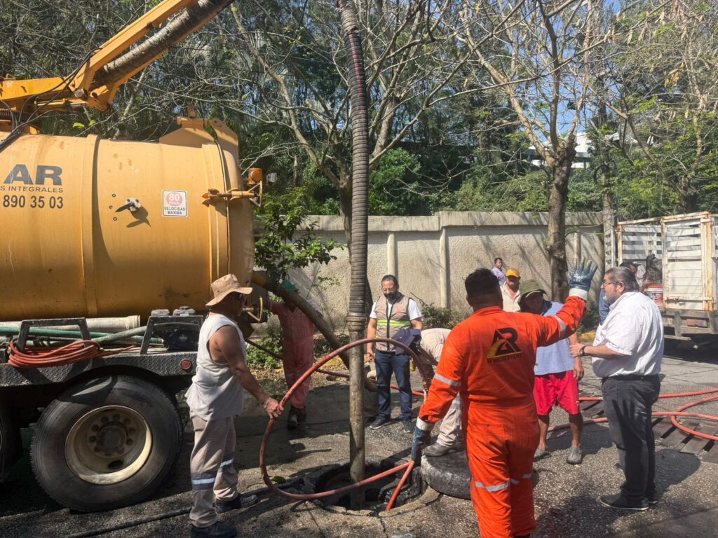 Desde temprana hora, el munícipe acudió a la avenida Jacarandas, en la colonia Fovissste 3, donde se llevaron a cabo trabajos de sondeo con equipo vactor para atender el problema de drenaje sanitario que ha generado afectaciones a las familias del sector.