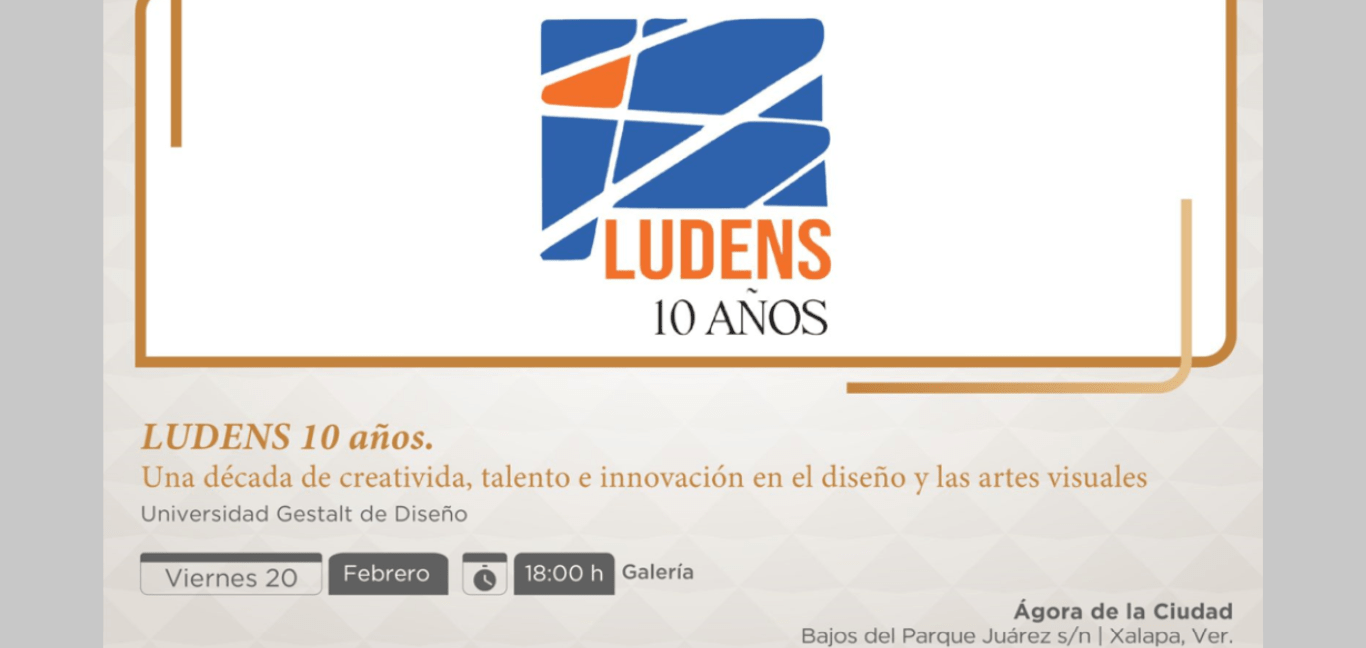 Xalapa, Ver., jueves 19 de febrero de 2026.- La Secretaría de Cultura de Veracruz (SECVER), en coordinación con la Universidad Gestalt de Diseño, invita al público a la inauguración de la exposición Ludens 10 años., que se llevará a cabo el viernes 20 de febrero, a las 18:00 horas, en el Ágora de la Ciudad. La entrada es libre.