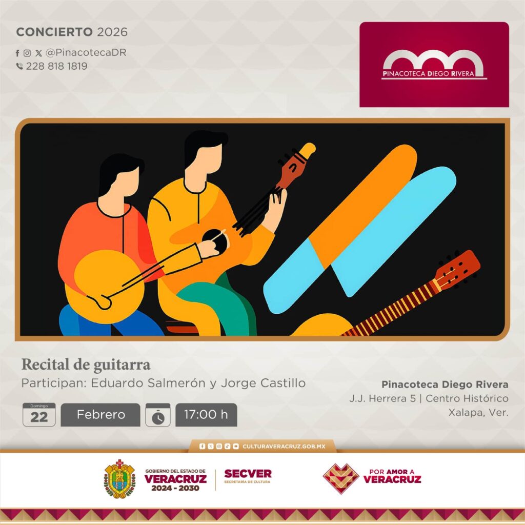 El domingo 22 de febrero, a las 17:00 horas, se llevará a cabo un recital de guitarra clásica a cargo de los músicos Eduardo Salmerón y Jorge Castillo, quienes ofrecerán un programa musical apto para todo público.