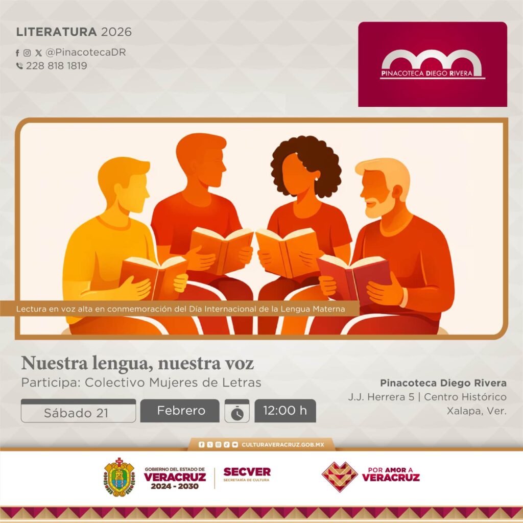 En conmemoración del Día Internacional de la Lengua Materna, el sábado 21 de febrero, a las 12:00 horas, se realizará la lectura en voz alta Nuestra lengua, nuestra voz, con la participación del Colectivo Mujeres de Letras, cuyos integrantes compartirán textos que celebran la diversidad lingüística y cultural.