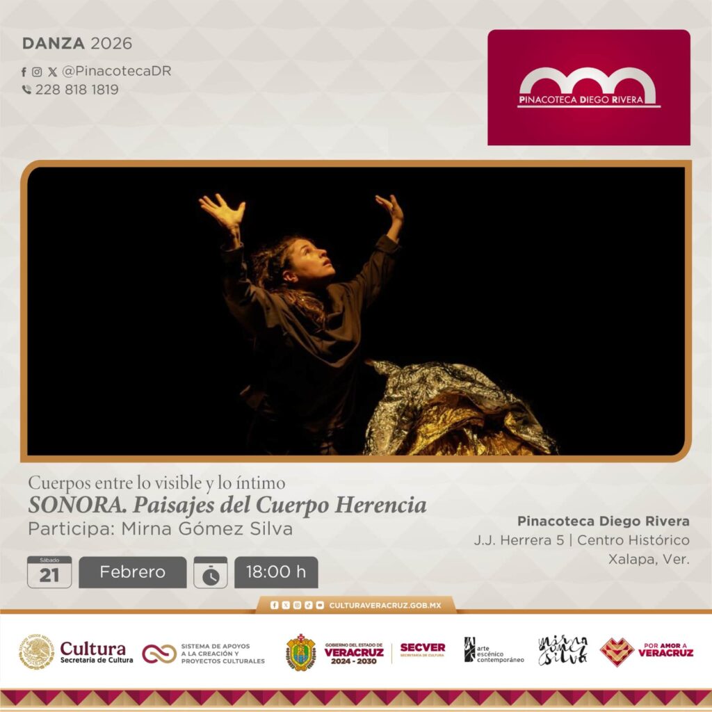 Xalapa, Ver., viernes 20 de febrero de 2026.- La Secretaría de Cultura de Veracruz (SECVER) invita al público en general a disfrutar de la programación cultural de la Pinacoteca Diego Rivera durante este fin de semana. Las actividades integran artes visuales, danza, música, literatura y propuestas inclusivas que invitan a reflexionar sobre el cuerpo, la identidad, la memoria y las múltiples formas de lo sensible.