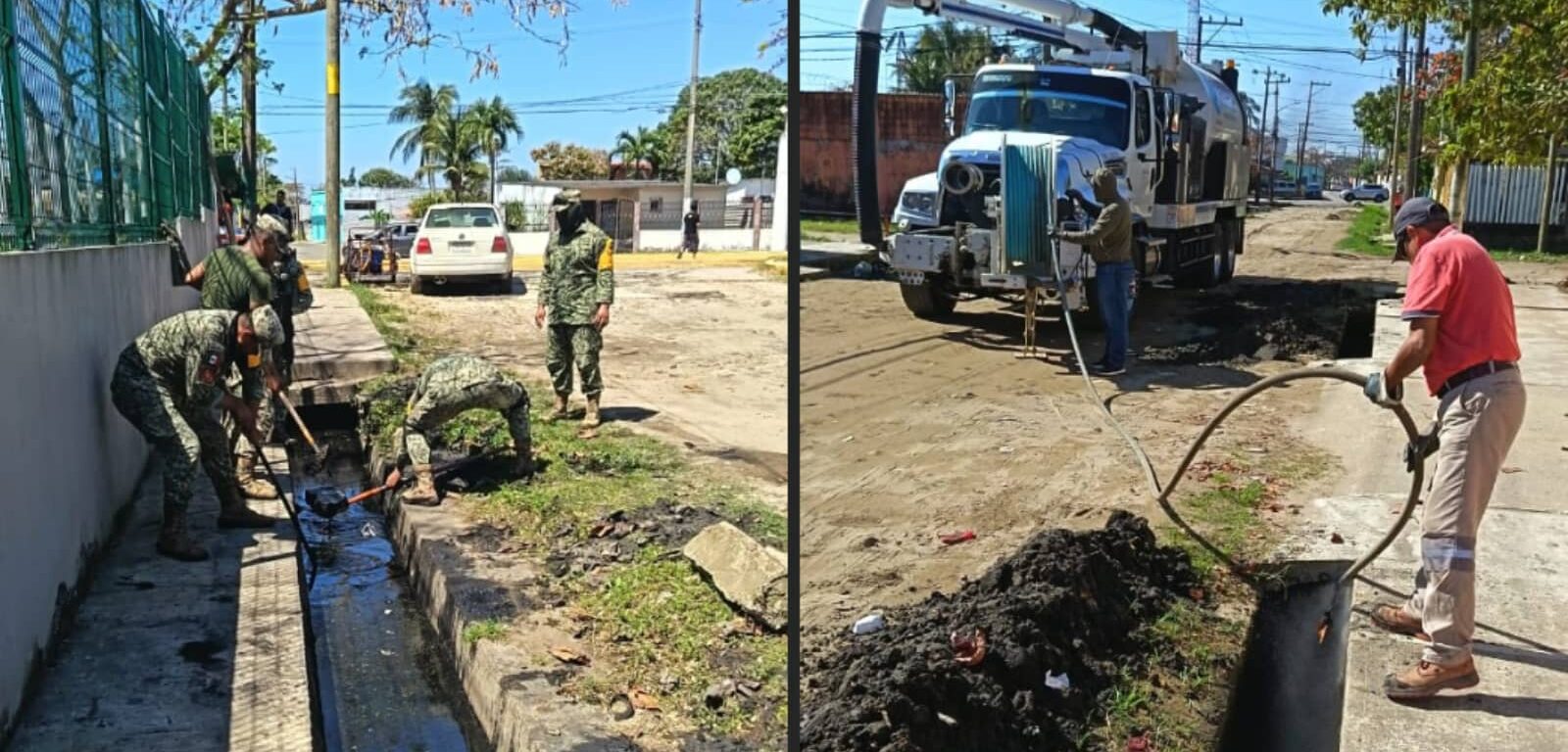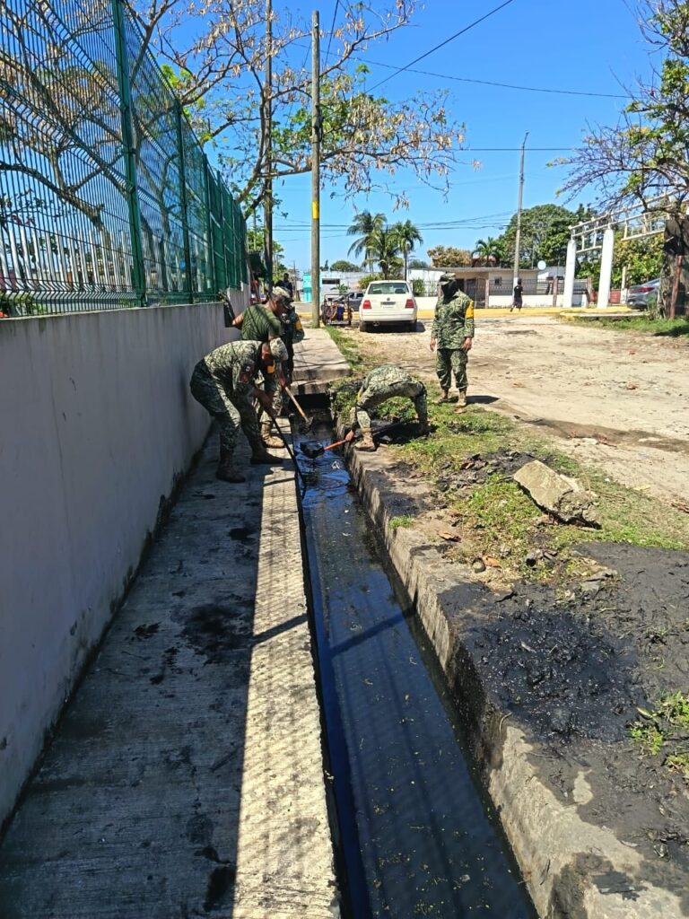 Entre las acciones destacaron la limpieza manual exhaustiva y el desazolve de cunetas con el equipo Vactor de la Comisión Municipal de Agua y Saneamiento (CMAS), con el objetivo de prevenir encharcamientos y fortalecer las condiciones de salubridad en el sector.