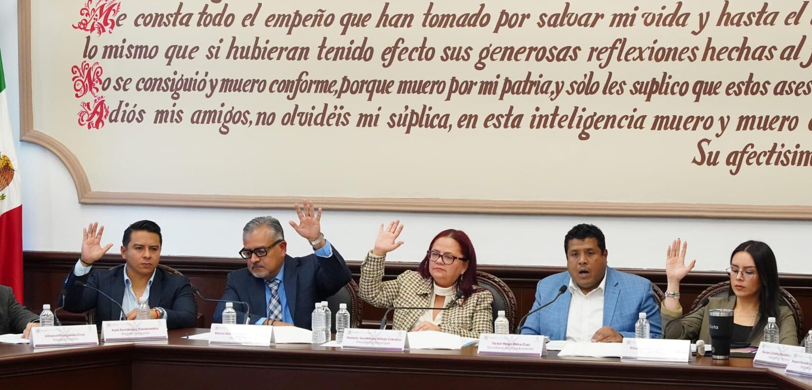 También, la Regidora Sexta, Lic. Hilda Elvia Aguilar Arroyo; el Regidor Séptimo, Lic. Diego Moreno Martínez; la Regidora Octava, Lic. Clarissa Monserrat López Morales; el Regidor Noveno, Lic. Joaquín Alejandro Cano Hernández; la Regidora Décima, Dra. Mónica Mendoza Madrigal; el Regidor Décimo Primero, Lic. Dalos Ulises Rodríguez Vargas; la Regidora Décima Segunda, Dra. Flor de María Mendoza Muñiz y la Regidora Décima Tercera, Lic. Priscila Nataly Labastida Vega.
