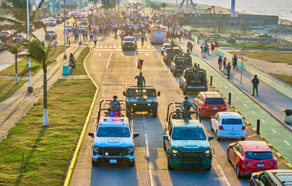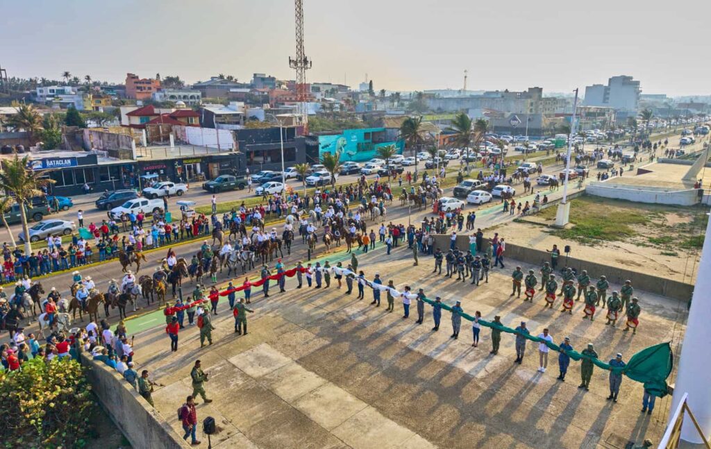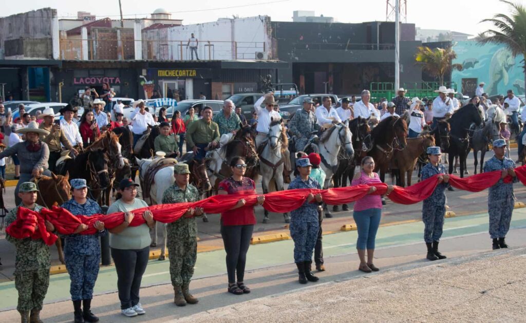 La cabalgata inició en la Plaza del Espíritu Santo (La Paloma), donde contingentes del Ejército Mexicano, la Guardia Nacional, la Secretaría de Seguridad Pública y jinetes de asociaciones ganaderas de Coatzacoalcos, Jesús Carranza, Soconusco, Pajapan y Acayucan, avanzaron a lo largo del paseo turístico hasta el Paseo de las Escolleras.
