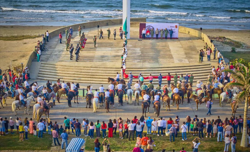 Coatzacoalcos, Ver., 28 de febrero de 2026.- El malecón de Coatzacoalcos se convirtió en escenario de una jornada de identidad nacional con la cabalgata conmemorativa de “Febrero, Mes del Ejército y la Fuerza Aérea Mexicanos”, evento que reunió a autoridades municipales, mandos militares, productores ganaderos y ciudadanía en general.