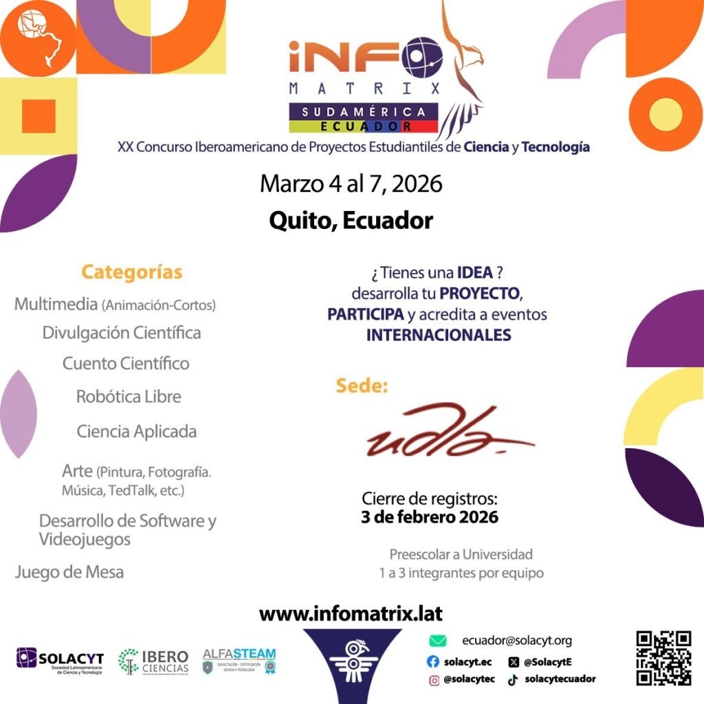 Xalapa, Ver.— Un grupo de jóvenes veracruzanos representará a México en Ecuador en el XX Concurso Iberoamericano de Proyectos Estudiantiles de Ciencia y Tecnología INFOMATRIX Sudamérica, que se realizará del 4 al 7 de marzo de 2026 en Quito, Ecuador, donde competirán con proyectos provenientes de distintos países de Iberoamérica.