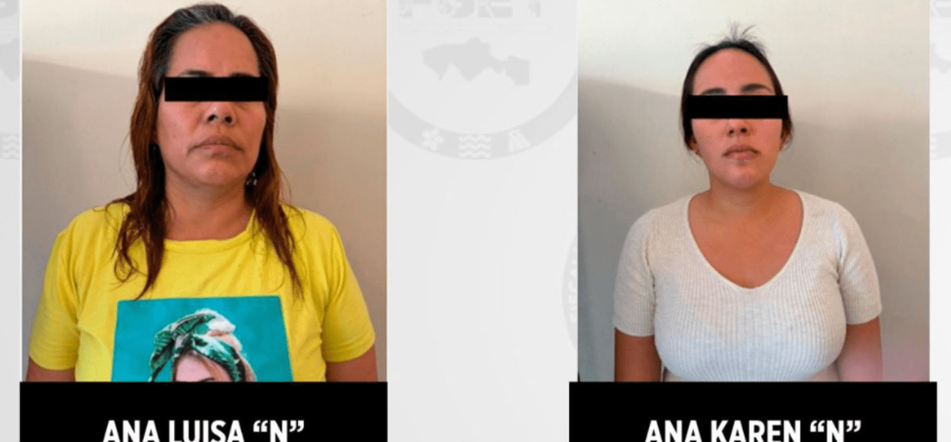 Durante el operativo fueron detenidas Ana Luisa “N.”, de 47 años, y Ana Karen “N.”, de 27, quienes quedaron a disposición de las autoridades competentes para determinar su situación jurídica.