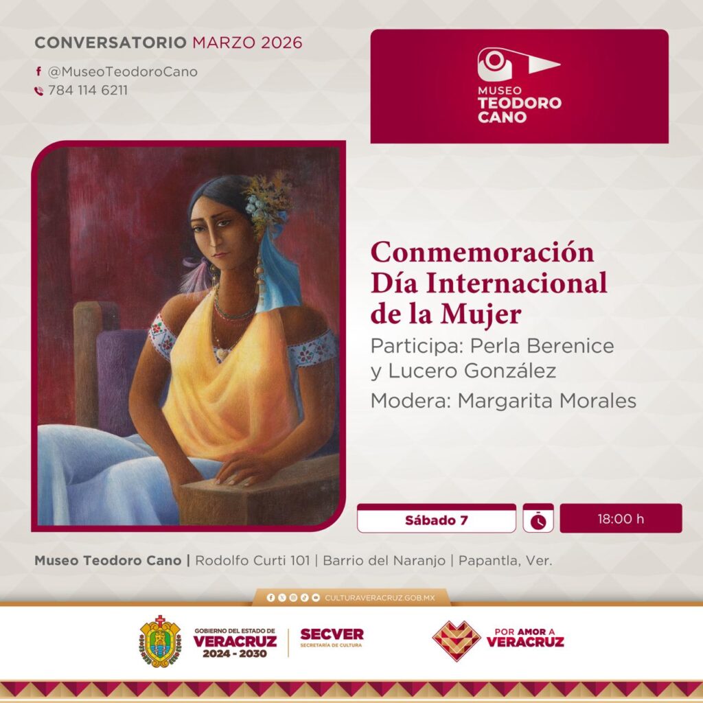 Xalapa, Ver., viernes 06 de marzo de 2026.- La Secretaría de Cultura de Veracruz (SECVER) invita al público general al Conversatorio Conmemoración del Día Internacional de la Mujer, el sábado 07 de marzo a las 18:00 horas, en el Auditorio del recinto cultural Museo Teodoro Cano, en Papantla. La entrada es libre.