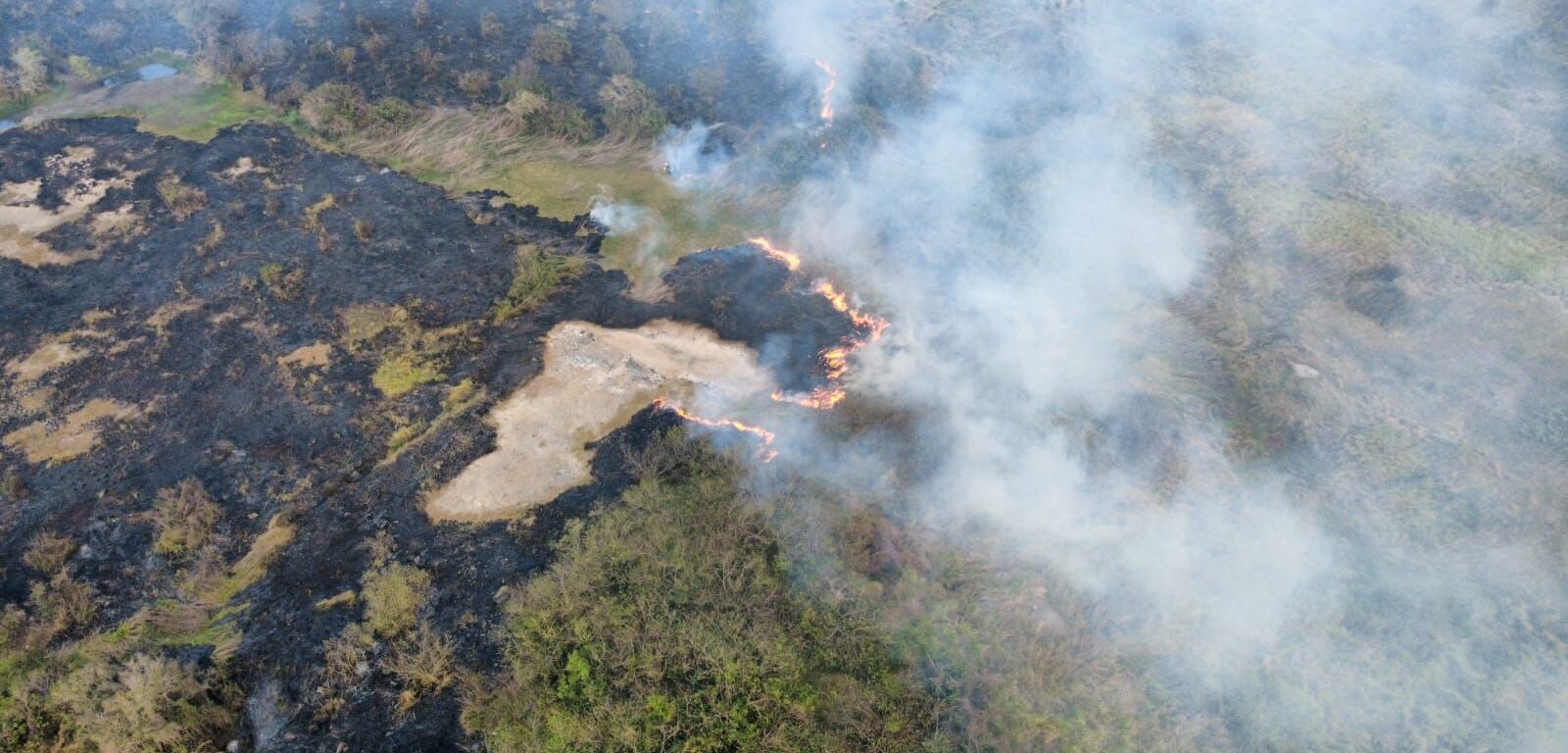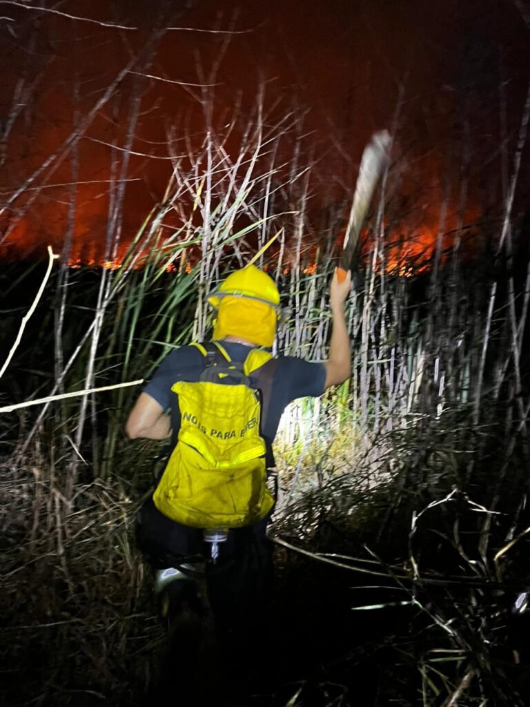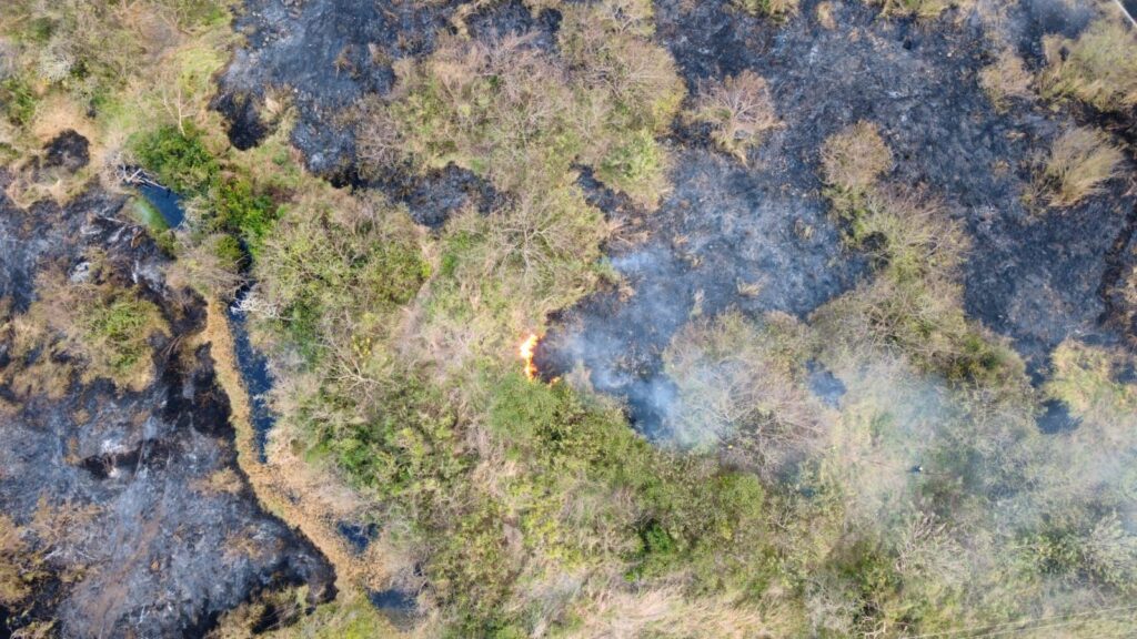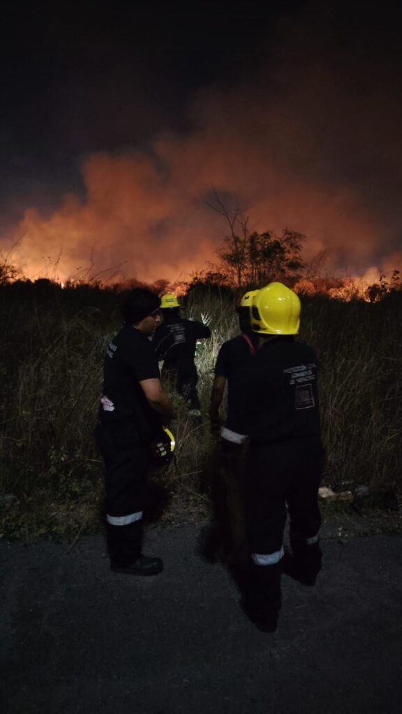 Personal del Heroico Cuerpo de Bomberos y de Protección Civil municipal de Veracruz atienden el incendio de un pastizal en la zona del fraccionamiento Nuevo Veracruz, que también abarcó parte de Las Bajadas y Albatros, y que había sido controlado previamente, antes de que los equipos se trasladaran a atender otro conato en la zona de Xana.