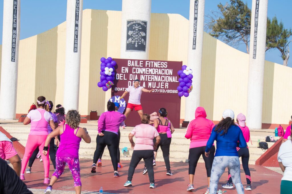 Coatzacoalcos, Ver., 7 de marzo de 2026.- En un ambiente de alegría, sororidad y activación física, el Ayuntamiento de Coatzacoalcos, que preside el alcalde Pedro Miguel Rosaldo García, en coordinación con el Instituto Municipal de la Mujer (IMM), llevó a cabo con éxito el evento de Baile Fitness la mañana de este sábado en la explanada del Hemiciclo a los Niños Héroes.