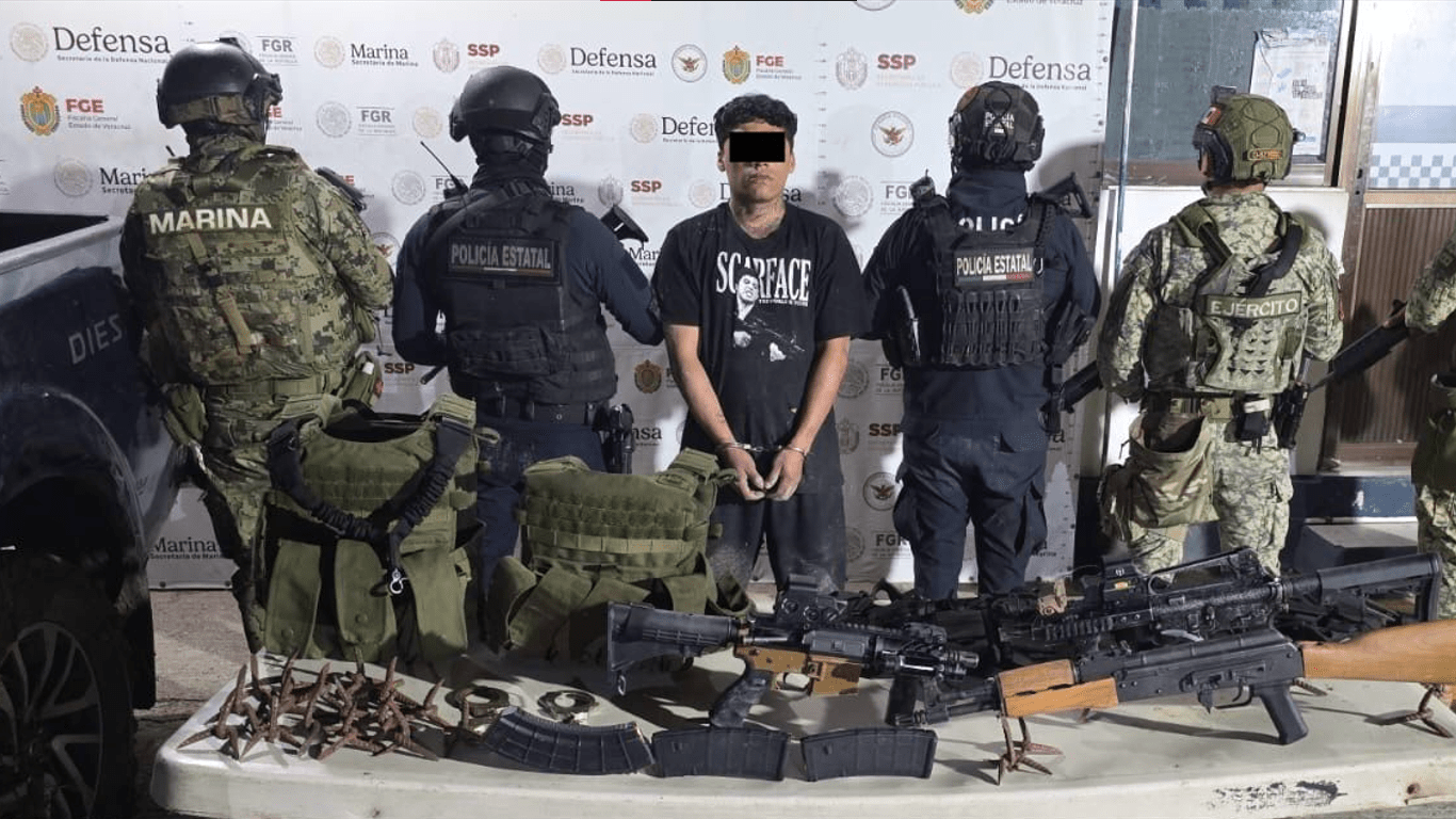En Coatzacoalcos fue aprehendido un masculino por delitos contra las instituciones de Seguridad Pública y en Tuxpan se aseguró un arma de fuego larga, granadas de 40 mm, una granada de fragmentación y una camioneta sin reporte de robo.