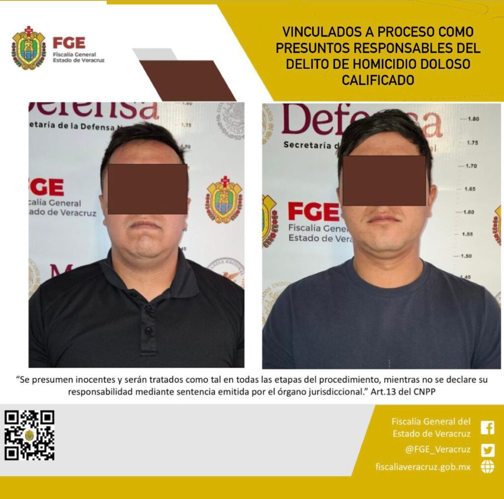 Xalapa, Ver., 7 de marzo de 2026.– La Fiscalía General del Estado (FGE) informó que un juez dictó vinculación a proceso contra Eder “N” y Miguel Ángel “N”, ex policías estatales que pertenecieron a la desaparecida Fuerza Civil de Veracruz, señalados como presuntos responsables del delito de homicidio doloso calificado.