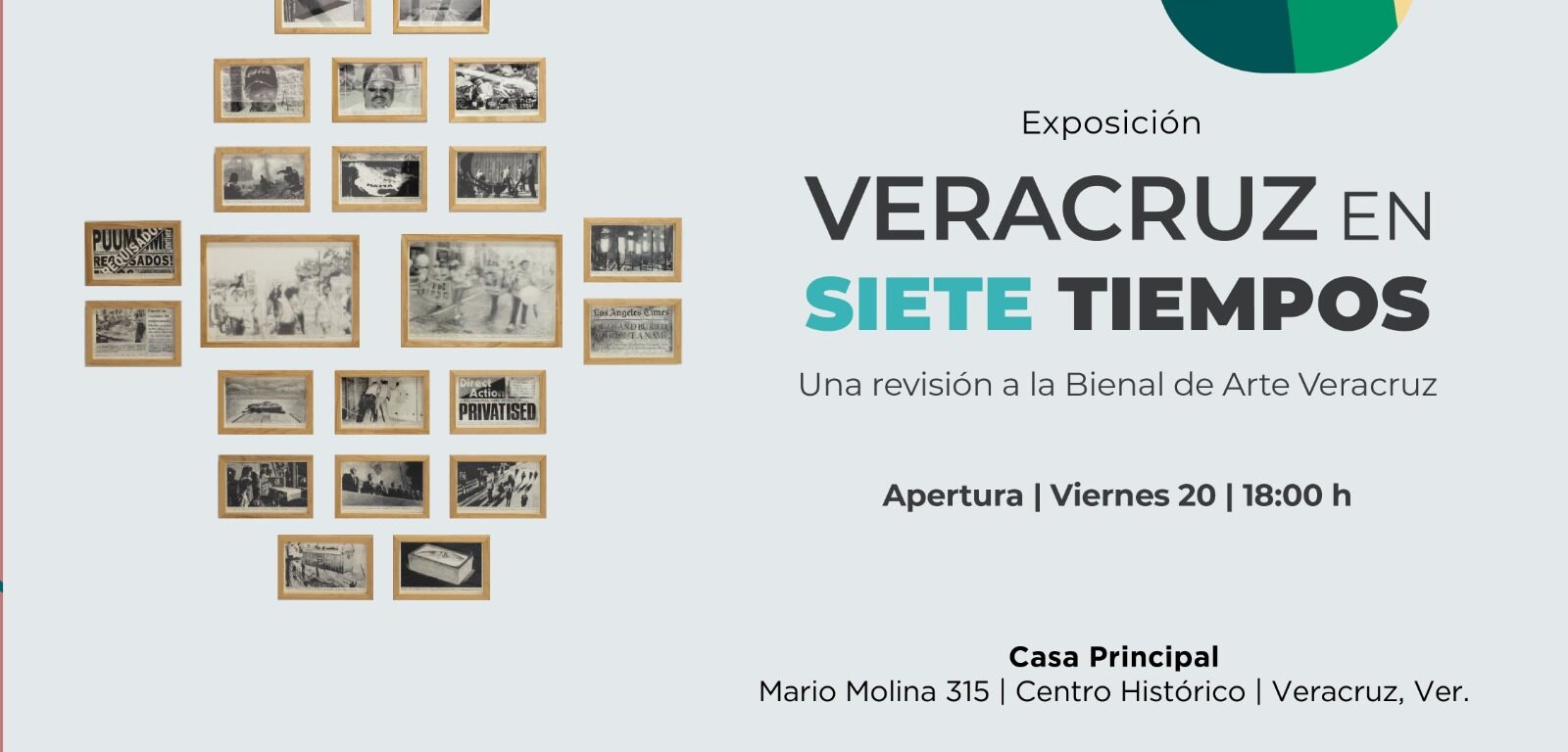 Xalapa, Ver., martes 17 de marzo de 2026.- La Secretaría de Cultura de Veracruz (SECVER) invita al público a la inauguración de la exposición Veracruz en siete tiempos. Una revisión a la Bienal de Arte Veracruz, que se llevará a cabo el viernes 20 de marzo, a las 18:00 horas, en el recinto cultural Casa Principal, en la ciudad de Veracruz. La entrada es libre.