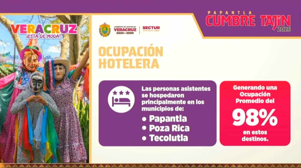 La combinación de una derrama económica significativa y niveles máximos de ocupación hotelera posiciona a Cumbre Tajín como un evento estratégico para el desarrollo turístico del estado. Comerciantes, prestadores de servicios y comunidades locales se vieron beneficiados por el flujo de visitantes nacionales y extranjeros.