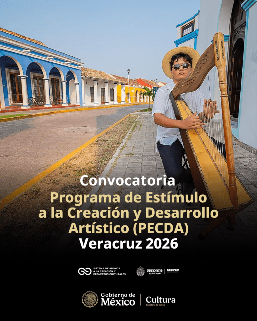 Xalapa, Ver., miércoles 25 de marzo de 2026.- La Secretaría de Cultura de Veracruz (SECVER), en coordinación con la Secretaría de Cultura del Gobierno de México, a través del Sistema de Apoyos a la Creación y Proyectos Culturales, invita a participar en la convocatoria del Programa de Estímulo a la Creación y Desarrollo Artístico de Veracruz (PECDA).