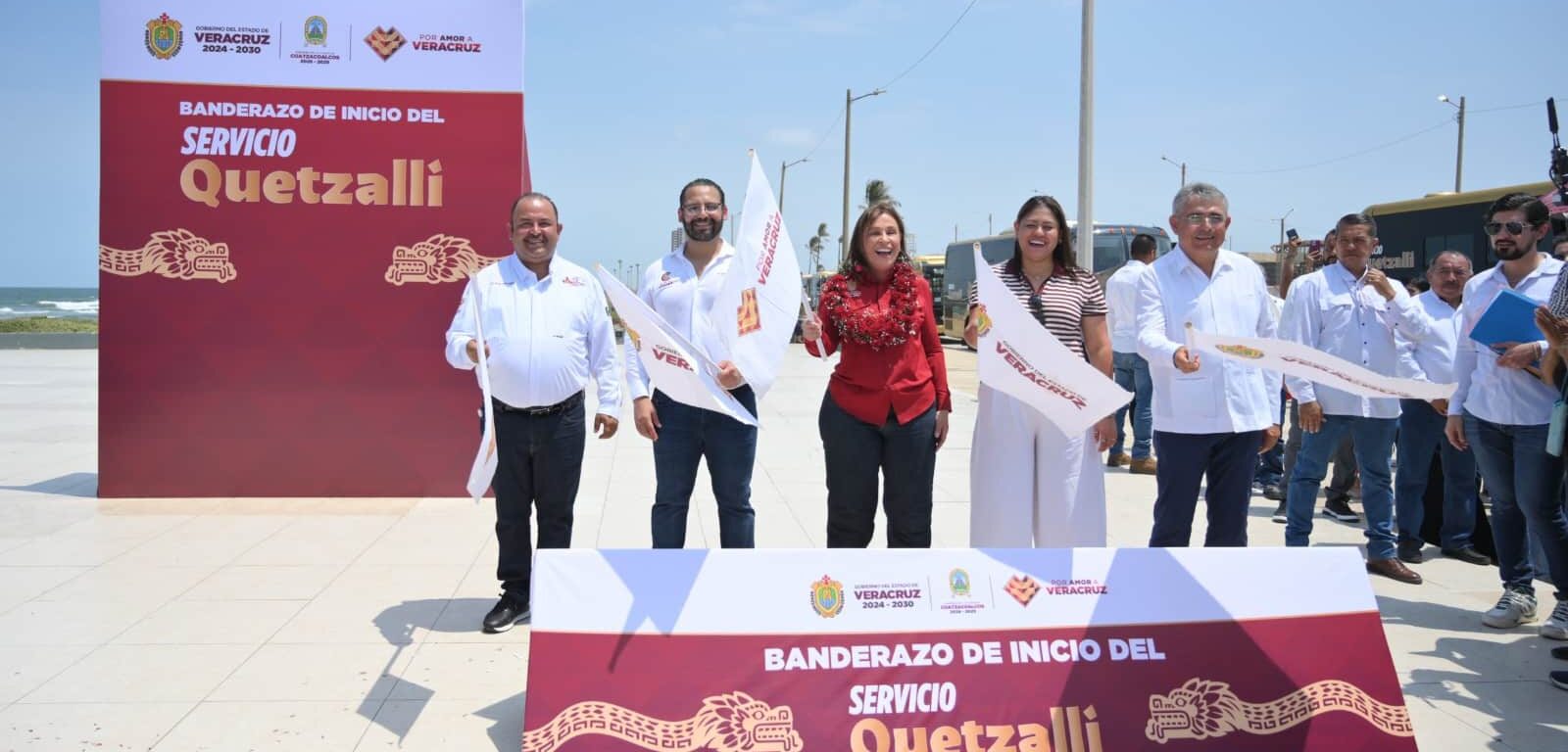Coatzacoalcos, Ver., 26 de marzo de 2026.- La gobernadora de Veracruz, Rocío Nahle García, y el presidente municipal, Pedro Miguel Rosaldo García, dieron el banderazo de salida a 60 unidades híbridas Quetzalli, marcando el inicio de una nueva etapa de modernización en la movilidad urbana del municipio.
