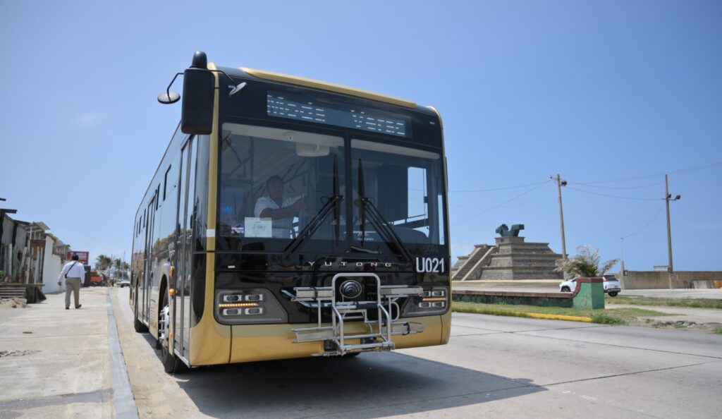 Los autobuses, fabricados por Yutong, son modelos híbridos diésel-eléctricos que permiten disminuir hasta en un 30% el consumo de combustible y reducir emisiones contaminantes, lo que los hace ideales para ciudades costeras como Coatzacoalcos.