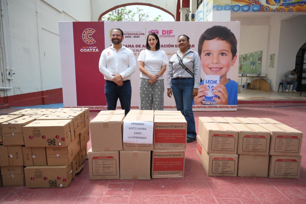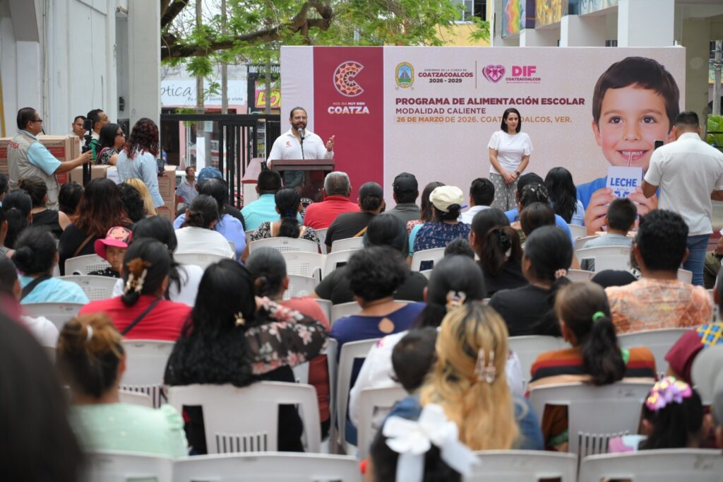 Coatzacoalcos, Ver., 26 de marzo de 2026.- Con el apoyo del Gobierno Estatal, el alcalde Pedro Miguel Rosaldo García y la presidenta del DIF Municipal, Sonia Marie Salvador Goraieb, encabezaron la entrega de desayunos escolares en su modalidad caliente, como parte de la estrategia para fortalecer la alimentación y el bienestar de la niñez.