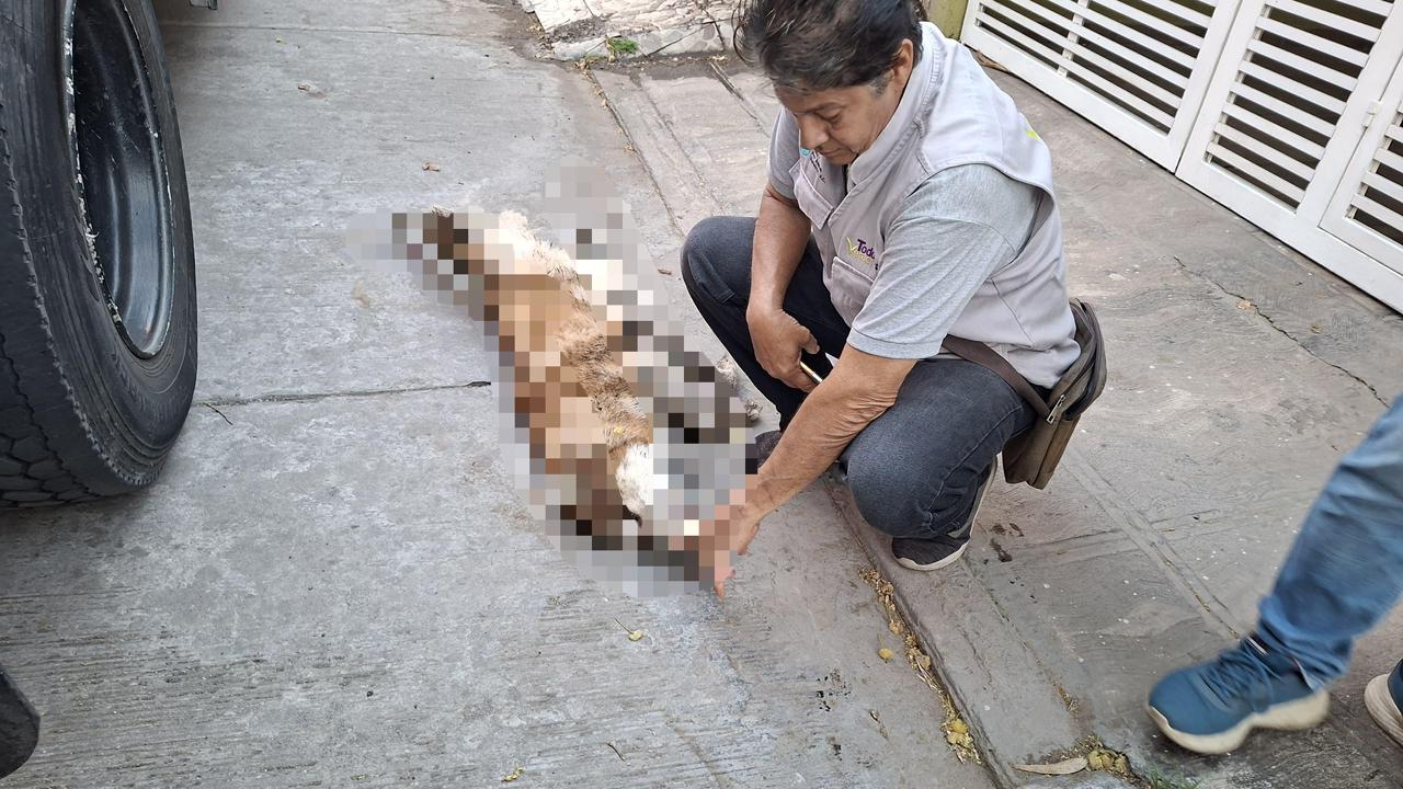 Personal de la dirección de Salud y Protección Animal, en coordinación con la dirección de Protección Civil y el Heroico Cuerpo de Bomberos, se trasladaron al sitio a atender el reporte hecho en redes sociales por vecinos que denunciaban la omisión de cuidados hacia el perro de raza Husky, mismo que, al ser revisado ya no presentaba signos vitales.