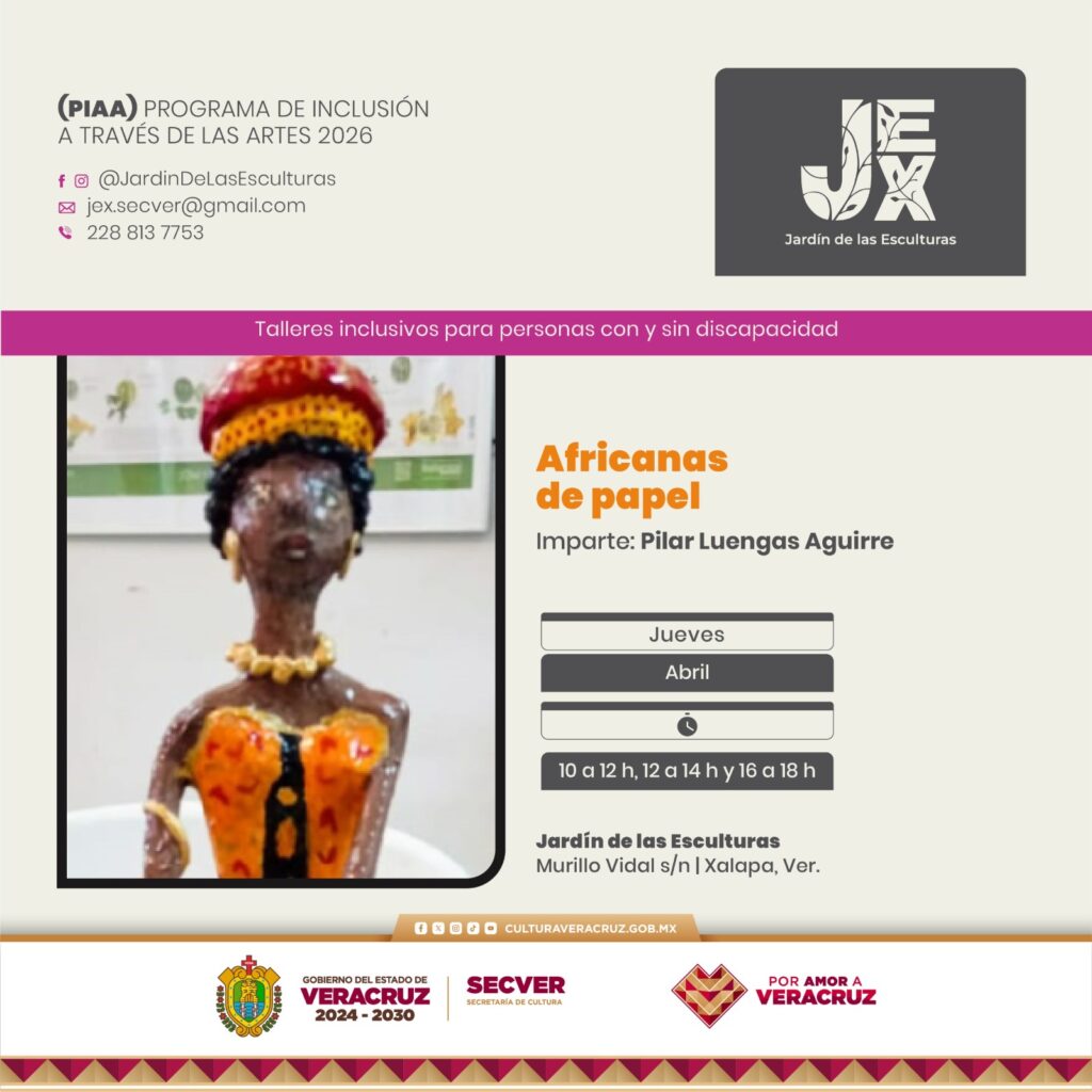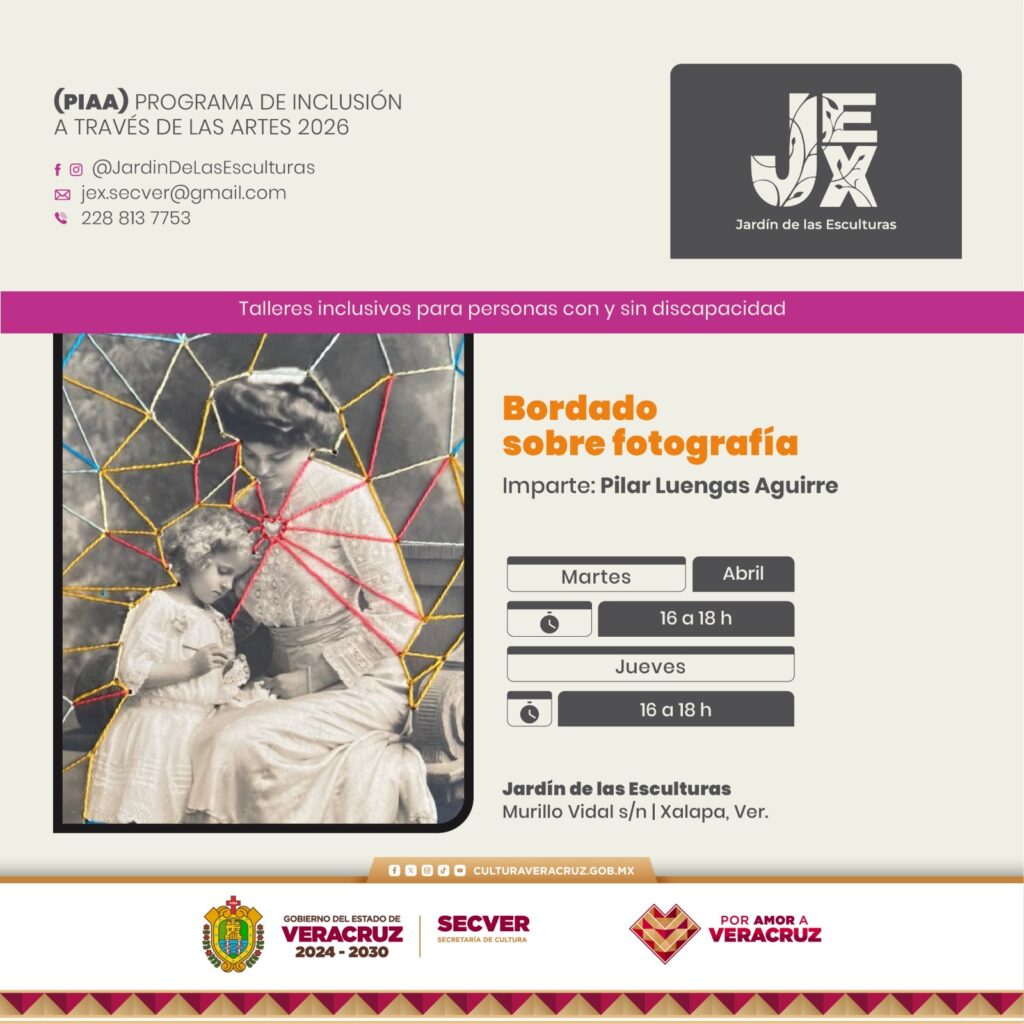 Xalapa, Ver., jueves 09 de abril de 2026.- La Secretaría de Cultura de Veracruz (SECVER) invita a participar en los talleres inclusivos dirigidos a personas con y sin discapacidad, que se realizarán durante abril en el Jardín de las Esculturas de Xalapa. Todas las actividades son gratuitas.
