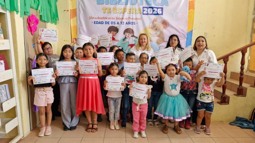 Coatzacoalcos, Ver., 10 de abril de 2026.- Más de 200 niños participaron en el curso “En Primavera la Biblioteca te Espera 2026”, promovido por el Gobierno de Coatzacoalcos y coordinado por la Jefatura de Bibliotecas Públicas Municipales, consolidando a estos espacios como puntos clave para el aprendizaje y la convivencia.