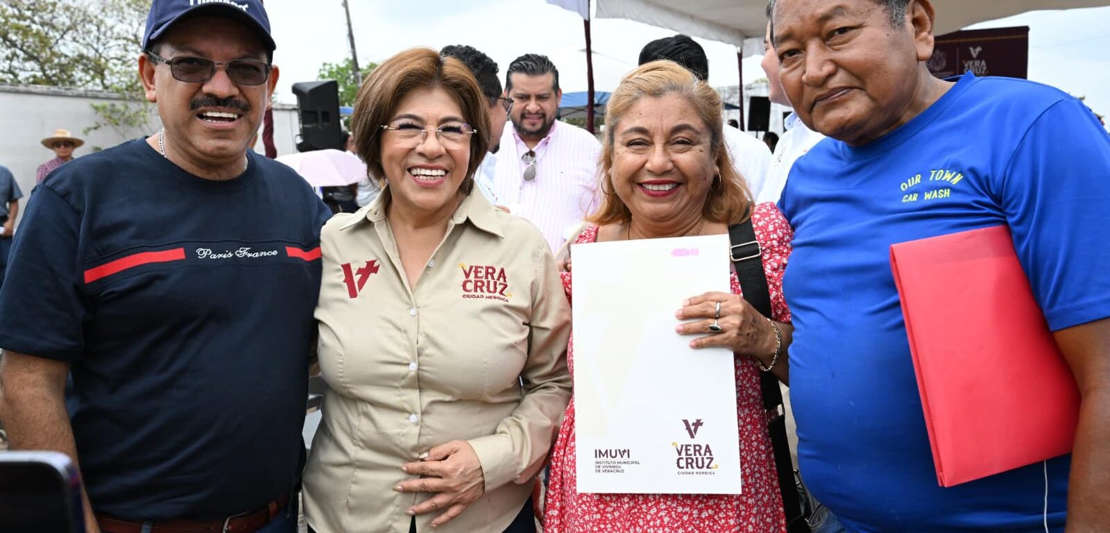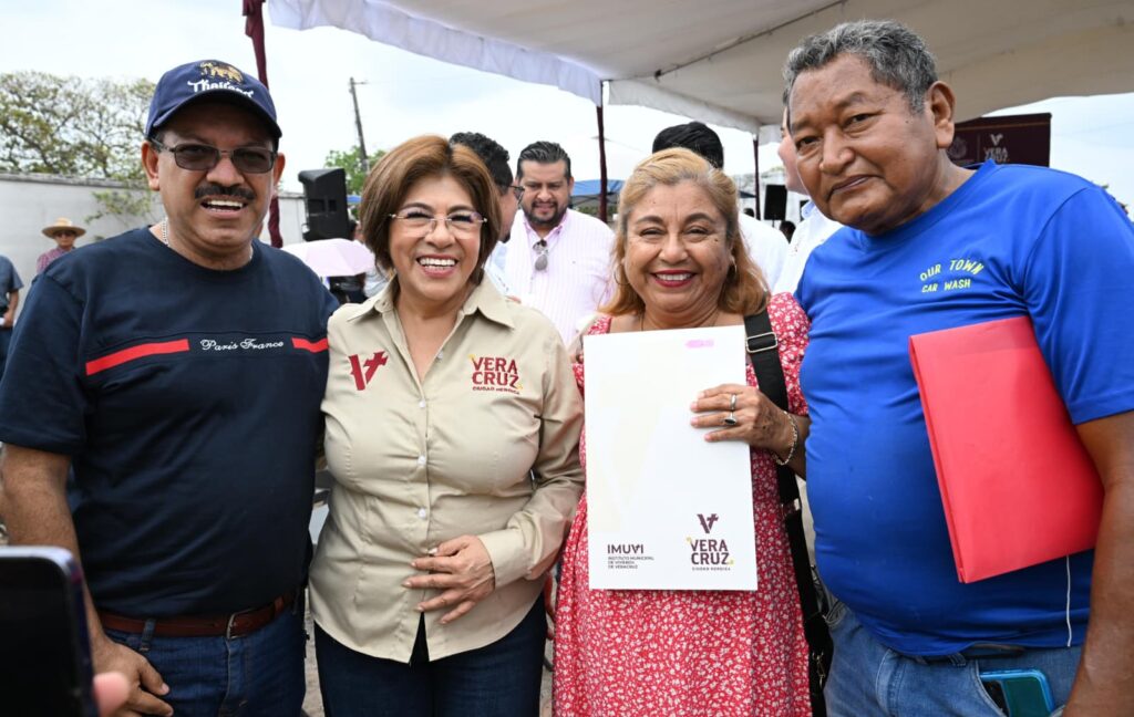 En el marco de sus primeros 100 días de administración, la presidenta municipal de Veracruz, Rosa María Hernández Espejo, encabezó la entrega de 255 escrituras a familias de las colonias Victoria, Paraíso, Lomas de Tarimoya y El Roble, brindándoles certeza jurídica sobre su patrimonio.