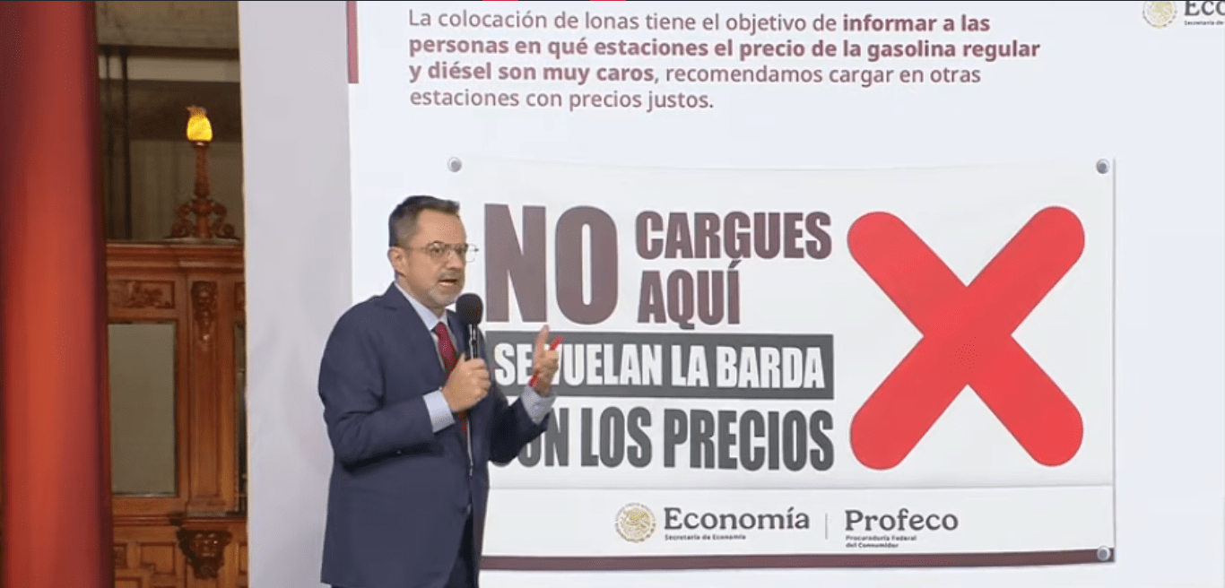 El titular del organismo, Iván Escalante, informó que a partir de este día se retomará la colocación de lonas con la leyenda “No cargues aquí”, las cuales serán visibles en estaciones de servicio que superen los precios considerados justos.