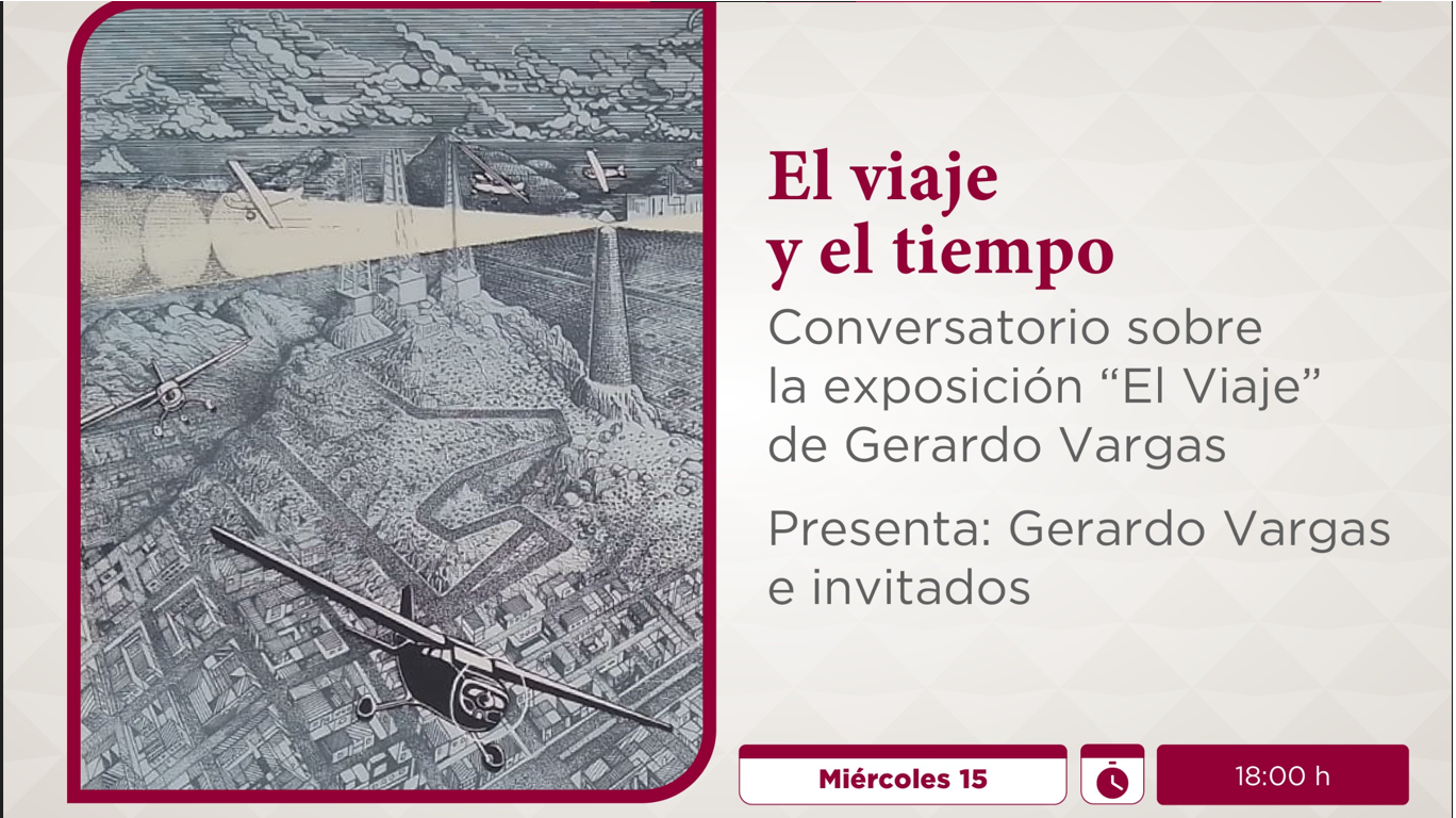 Gerardo Vargas, actual expositor en la sala principal del recinto, compartirá con las y los asistentes su proceso de creación de la exposición Viaje, así como su proceso creativo y trayectoria como ilustrador.