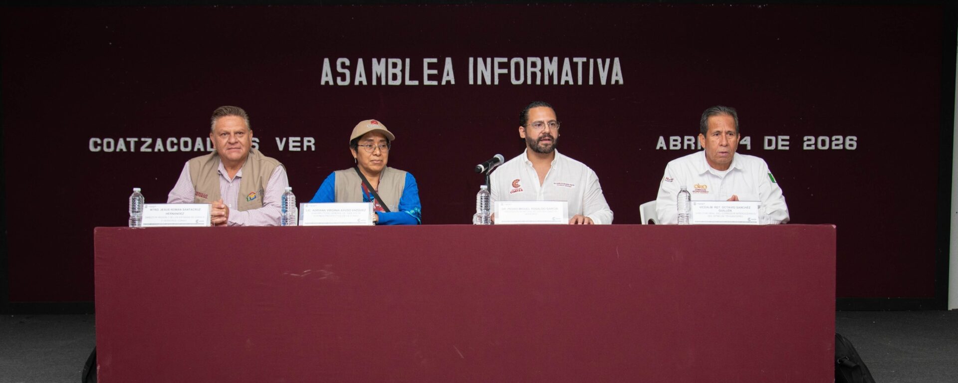 Coatzacoalcos, Ver., 14 de abril de 2026.- El presidente de Coatzacoalcos, Pedro Miguel Rosaldo García, participó en la asamblea informativa encabezada por la Comisión Nacional de Vivienda (Conavi) y el Corredor Interoceánico del Istmo de Tehuantepec (CIIT), dirigida a familias que habitan en el derecho de vía de la Línea Z y que serán reubicadas.