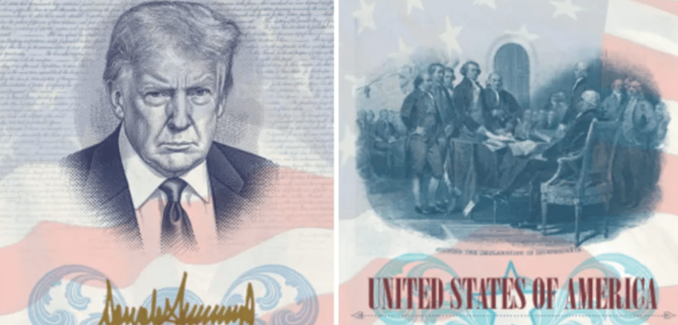 De acuerdo con maquetas obtenidas por el medio, el nuevo diseño mostrará el rostro de Trump en la portada interior del documento, enmarcado por la Declaración de Independencia y la bandera de Estados Unidos. Además, incorporará la firma del mandatario en color dorado.