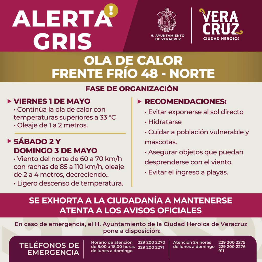 La presidenta municipal de Veracruz, Rosa María Hernández Espejo, informa a la ciudadanía sobre la llegada del frente frío número 48 durante el fin de semana, el cual provocará lluvias, rachas fuertes de viento y descenso de temperatura, por lo que es importante mantenerse atentos a los avisos de las autoridades.