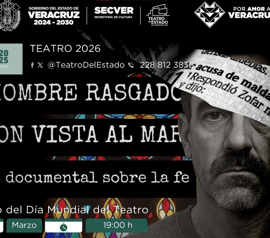 Xalapa, Ver., viernes 27 de marzo de 2026.- La Secretaría de Cultura de Veracruz (SECVER), en coordinación con el Programa de Estímulos a la Creación y Desarrollo Artístico (PECDA) del Sistema de Apoyos a la Creación y Proyectos Culturales, invita a la obra escénica Hombre rasgado con vista al mar, en el marco del Día Mundial del Teatro. Será presentada hoy a las 19:00 horas, en … Continuar leyendo SECVER celebra el Día Mundial del Teatro con una puesta en escena